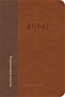 Huisbijbel in Herziene Statenvertaling met vernieuwde flexibele vivella (kunstleren) omslag, goudsnee en duimgrepen.