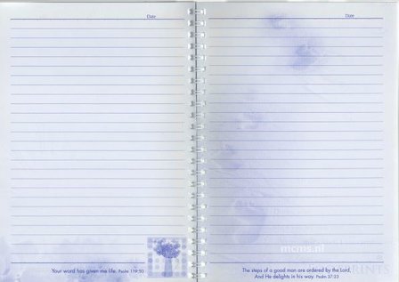 A5 formaat 14,8 cm x 21 cm | 96 gelinieerde bladzijden met op iedere bladzijde een bemoedigende Bijbeltekst